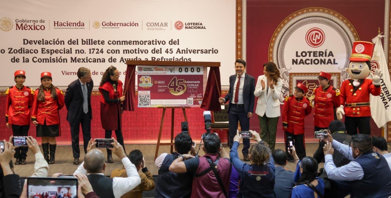 La Lotería Nacional celebró el 45 Aniversario de la Comisión Mexicana de Ayuda a Refugiados (Comar) con el billete del Sorteo Zodiaco Especial No. 1724, por su papel como un referente en América Latina en la atención y reconocimiento de quienes huyen por motivos como la persecución o la violencia en sus países de origen.