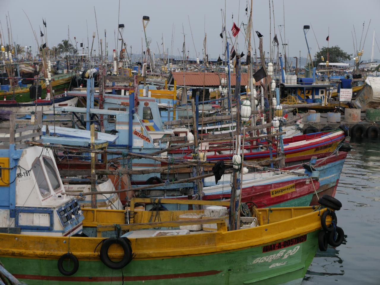 W de Welligama. De aquí zarpan, en la punta sur de la isla, muy temprano, decenas de embarcaciones cargadas de turistas que han venido hasta acá con el objetivo de ver ballenas, whale watching. Un safari marítimo de cuatro o cinco horas en busca del cetáceo y delfines. Por su situación geográfica, Welligama y toda la costa sur de Sri Lanka es un pasadero de estos animales e importante fuente de ingresos turísticos. Son tantos los botes de todo tipo: además de los cruceros turísticos hay veleros, lanchas, yates de ricachones y las pirogas de los pescadores, que las ballenas, que no son nada tontas, evaden y ya se fueron a otro sitio del océano Índico.