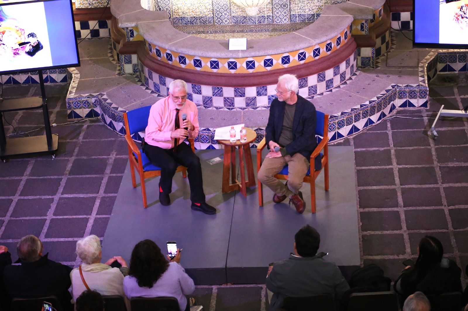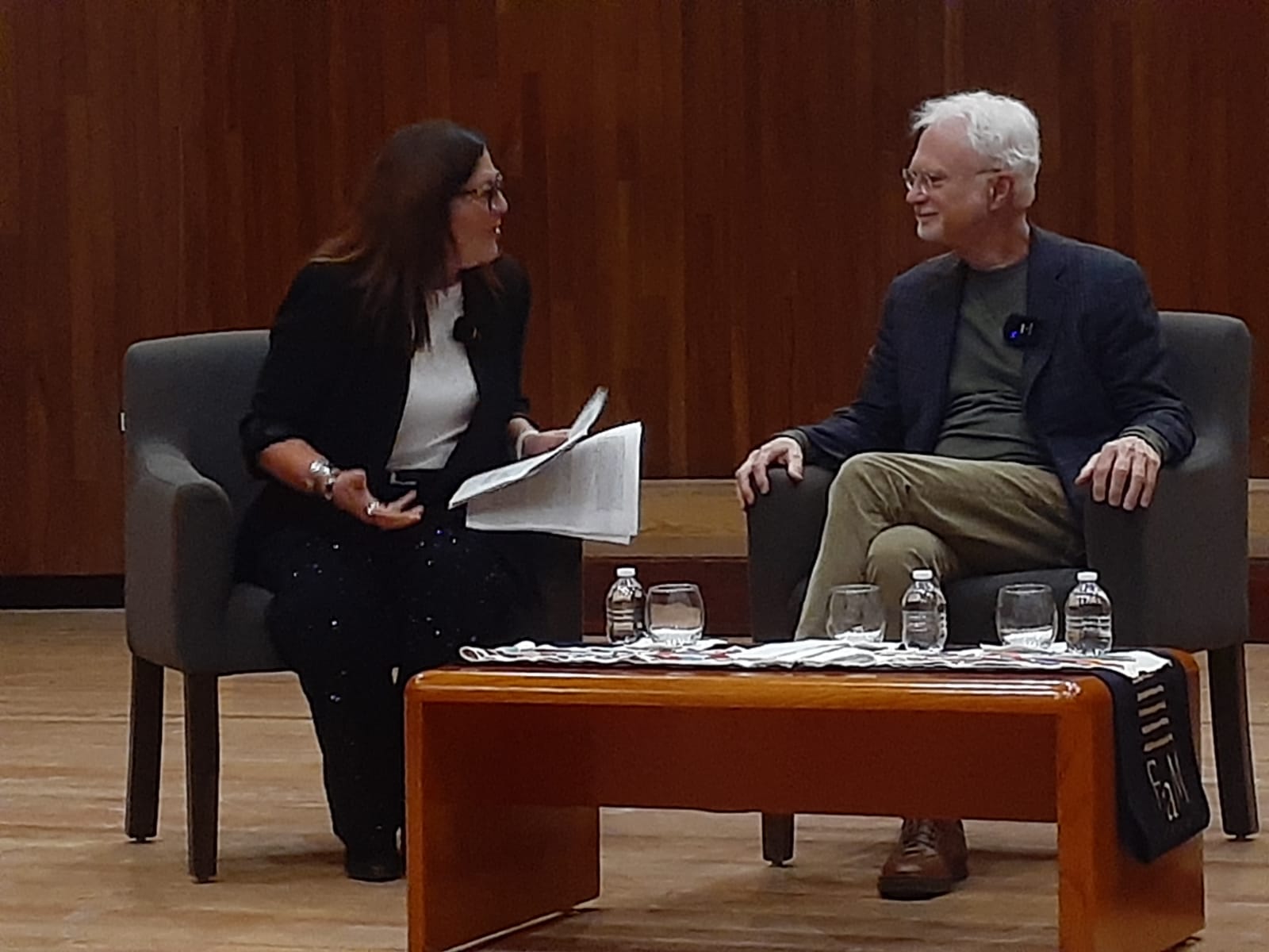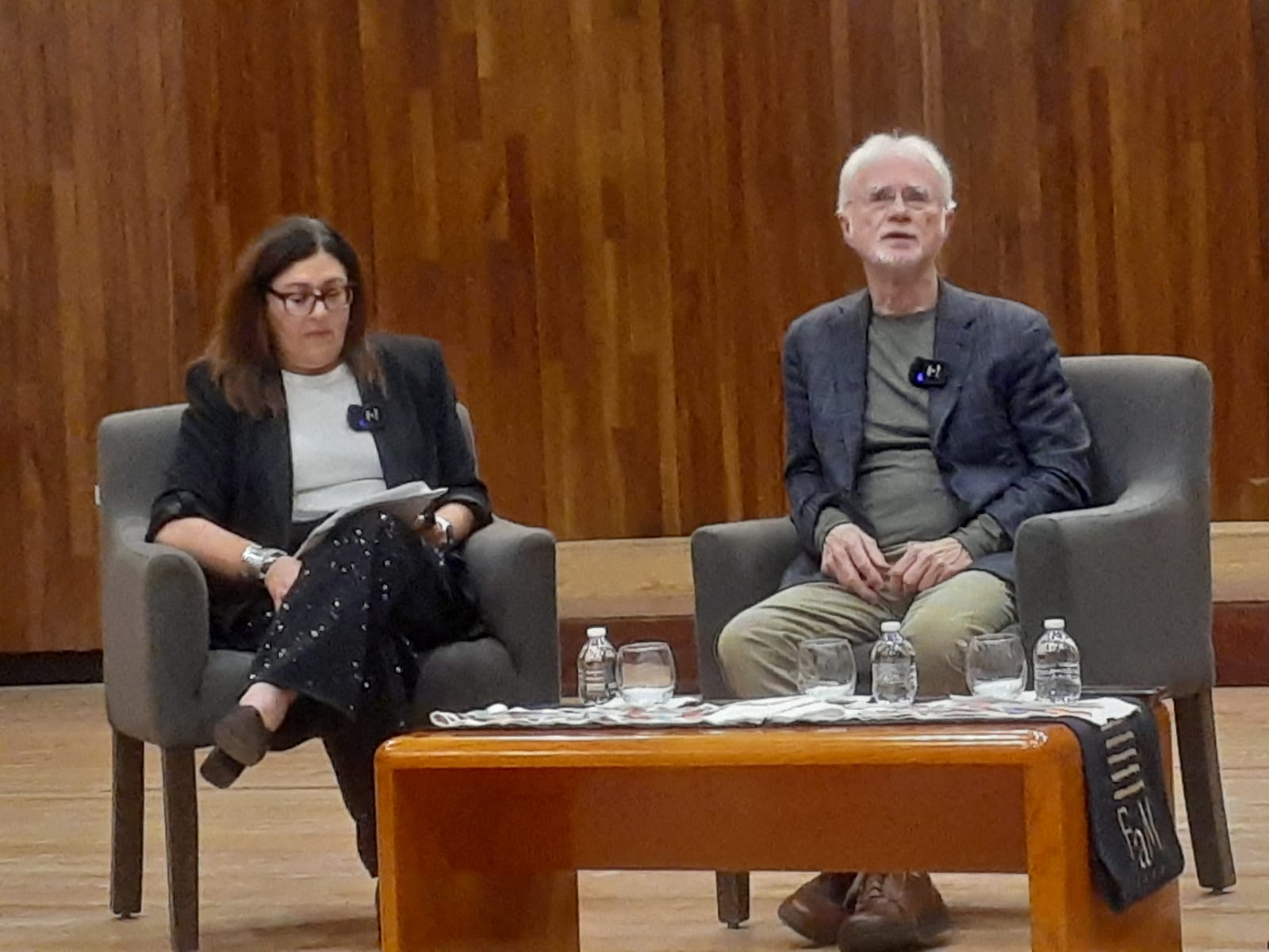 Adams abrió la semana la noche del miércoles 20 de agosto, después un primer ensayo con la OSM, con una charla con Juan Arturo Brennan para asiduos a los conciertos del ensemble universitario que dirige Carlos Miguel Prieto y la tarde del jueves 21 acudió puntual a charlar con la compositora mexicana Gabriela Ortiz en una sala llena ahora de estudiantes de la Facultad de Música de la UNAM.