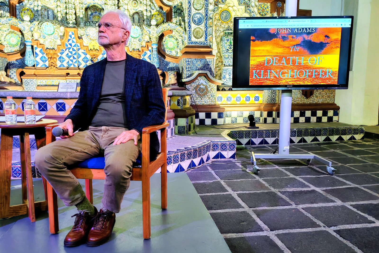 Ahí habló de sus óperas y de sus dos oratorios: El Niño (en español, 2000) y The Gospel According to the Other Mary (El evangelio según la otra María, 2013), que como sus otras óperas contó con la colaboración del director de escena legendario Peter Sellars, a quien atribuyó haber conocido a poetas latinoamericanos Rosario Castellanos, sor Juana, Gabriela Mistral y Rubén Darío que incluyó en particular en El Niño, que tanto en Casa del Risco como en la Facultad de Música llamó su “Mesías”.